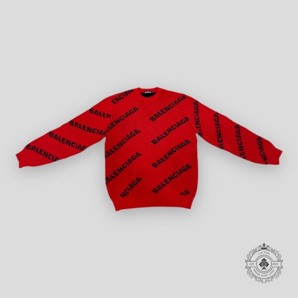 Balenciaga All Over Logo Sweater in Red