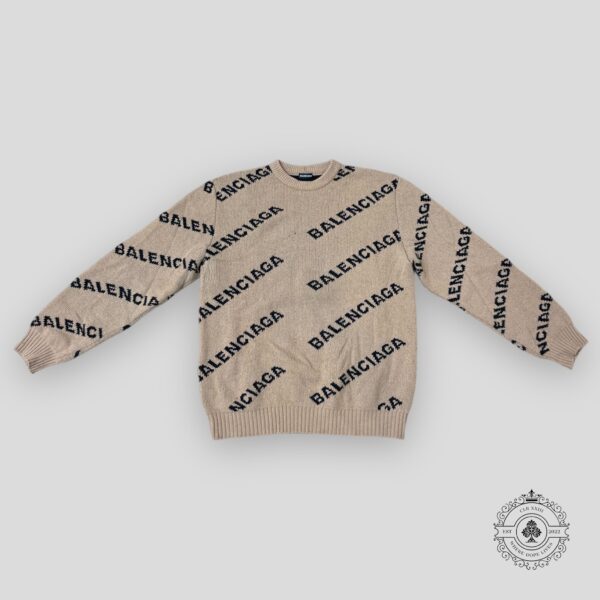 Balenciaga All Over Logo Sweater in Beige