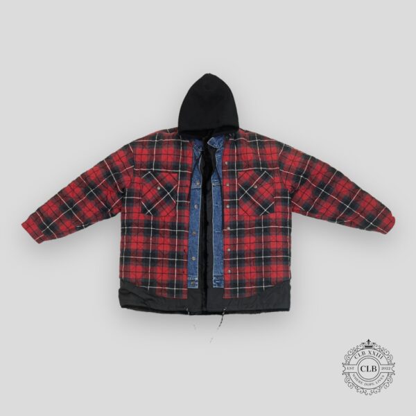 BALENCIAGA BLEACHED PLAID HOODED FLANNEL – RED