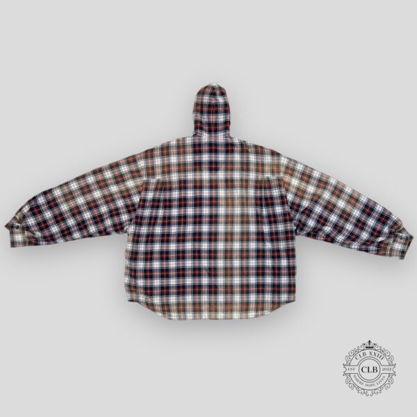 BALENCIAGA BLEACHED PLAID HOODED FLANNEL – BLUE