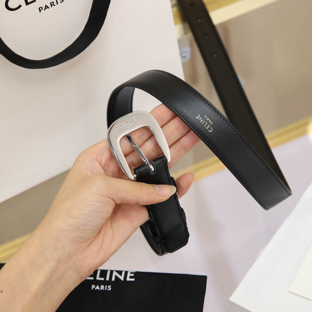 CL MEDIUM 25 MM MARCO BELT WITH STRASS IN BLACK CALFSKIN SILVER HARDWARE