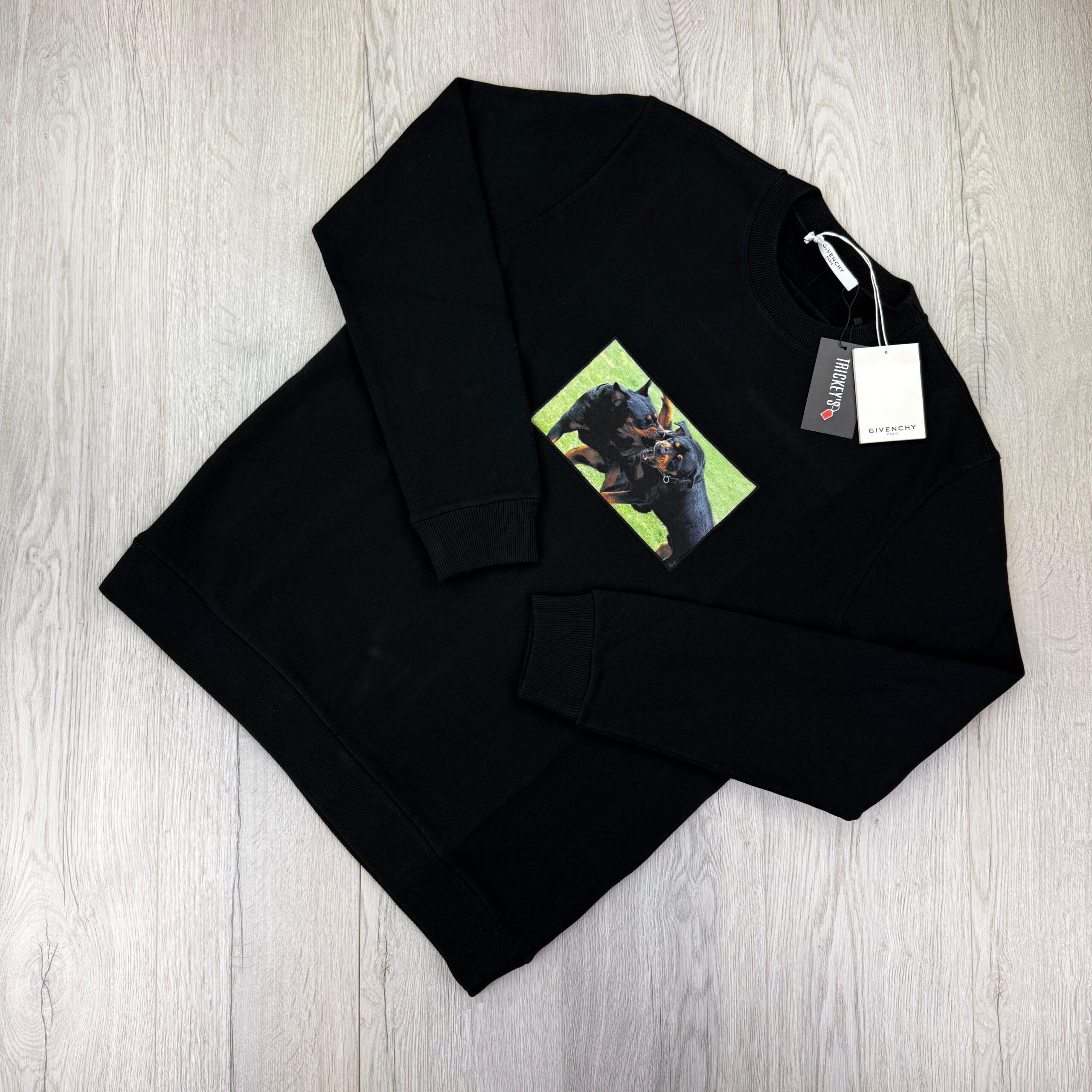 Givenchy Men’s Rottweiler Patch Black Crewneck Jumper – Large