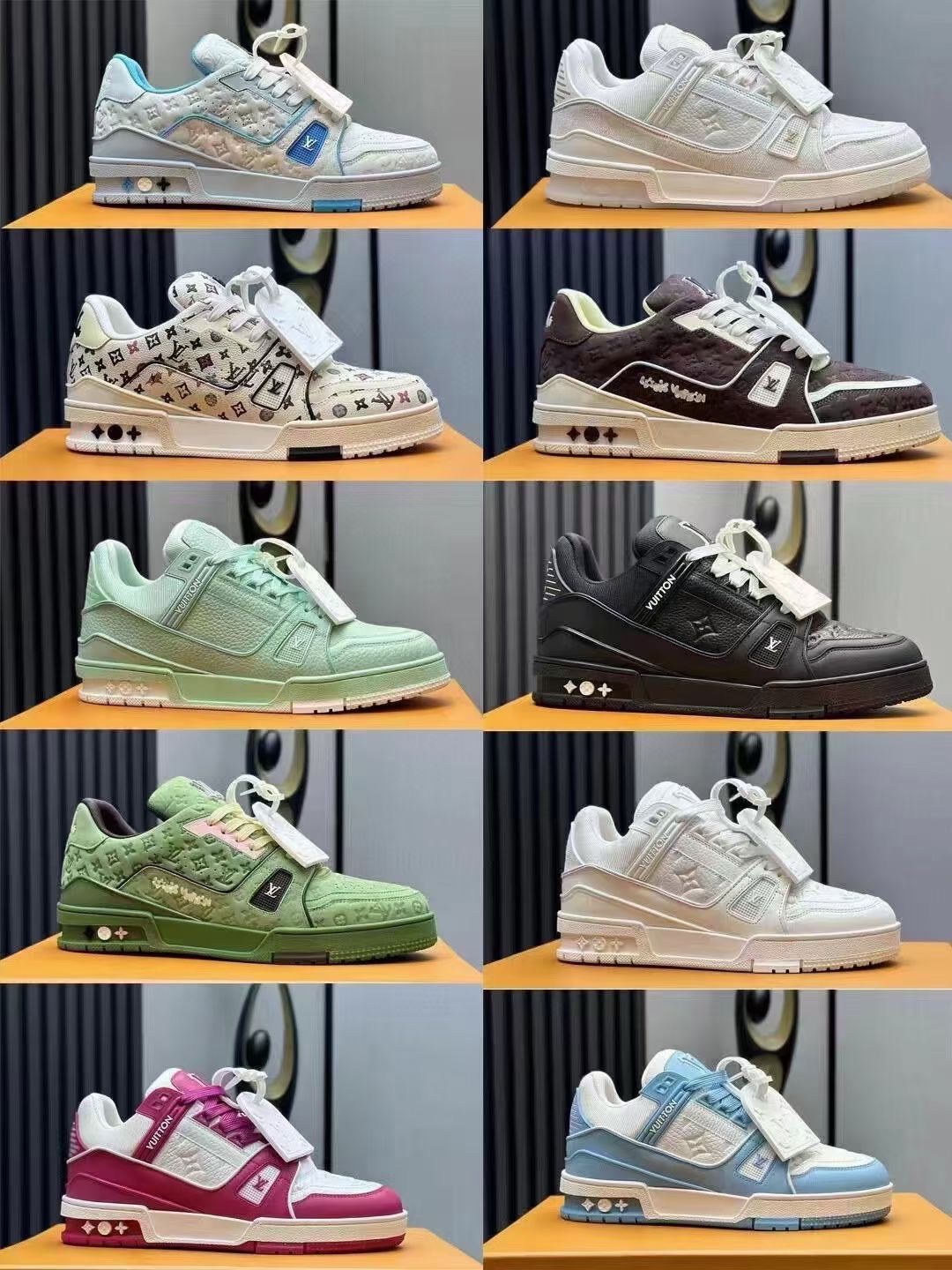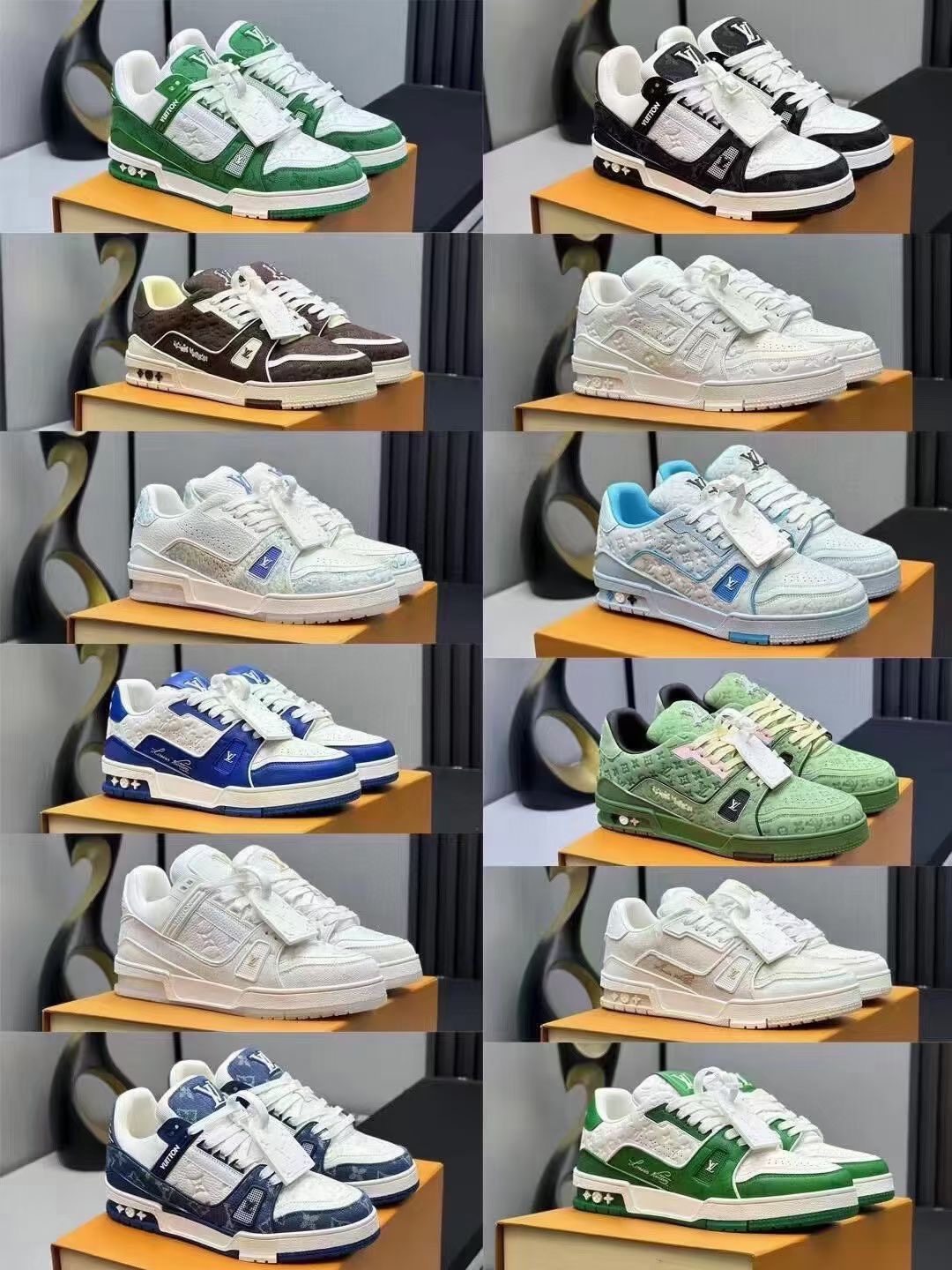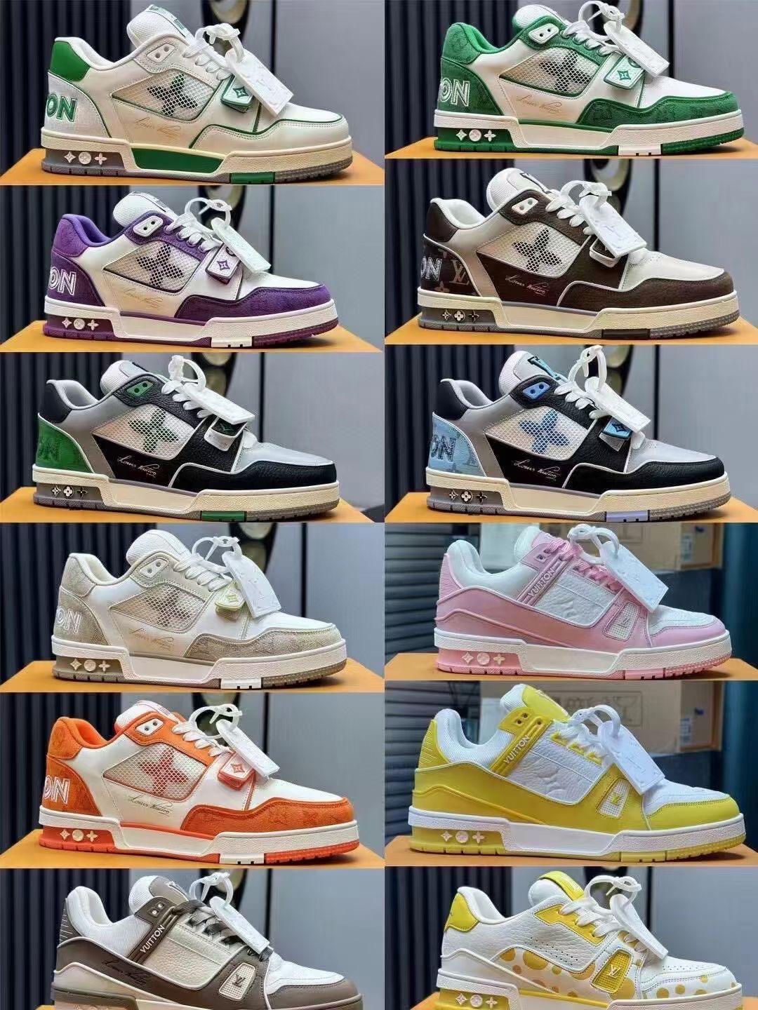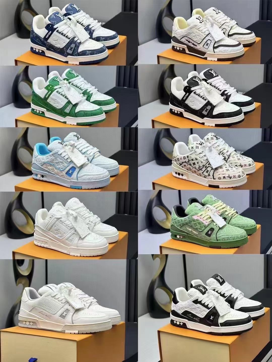 Louis Vuitton LV Trainer sneakers, sourced from the same channels as overseas purchases. Premium retail quality, exclusively supplied for authentic foreign trade. Developed from the original model with ZP-grade full packaging. Perfect last shape, accurate color matching, TPU outsole, texture comparable to the original, and details identical to the original.
