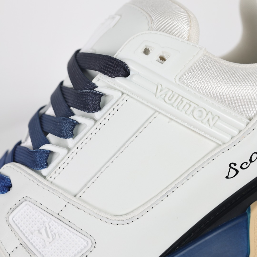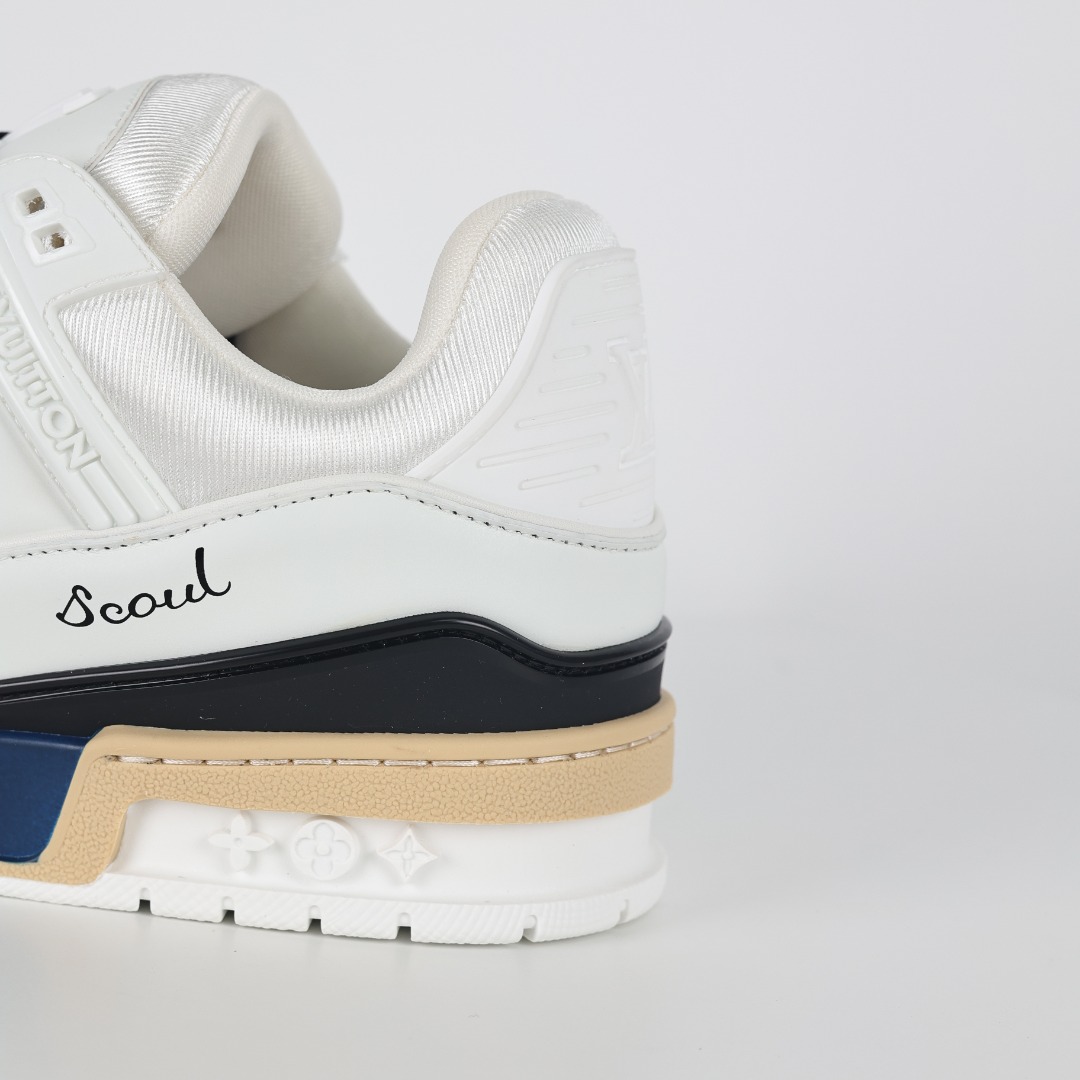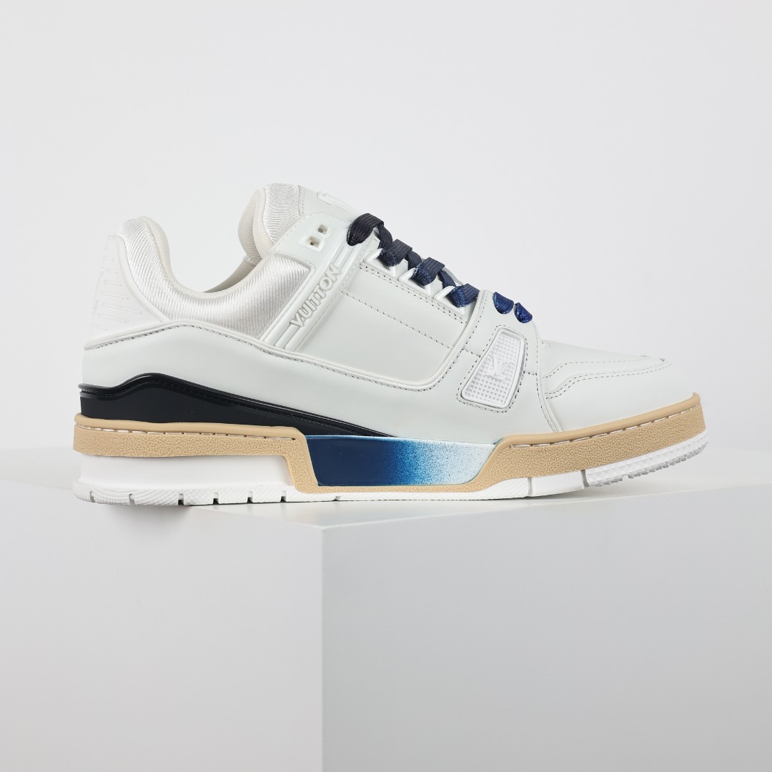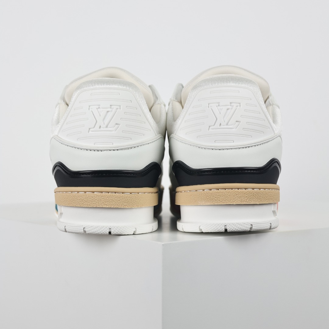 Louis Vuitton LV Trainer sneakers, sourced from the same channels as overseas purchases. Premium retail quality, exclusively supplied for authentic foreign trade. Developed from the original model with ZP-grade full packaging. Perfect last shape, accurate color matching, TPU outsole, texture comparable to the original, and details identical to the original.