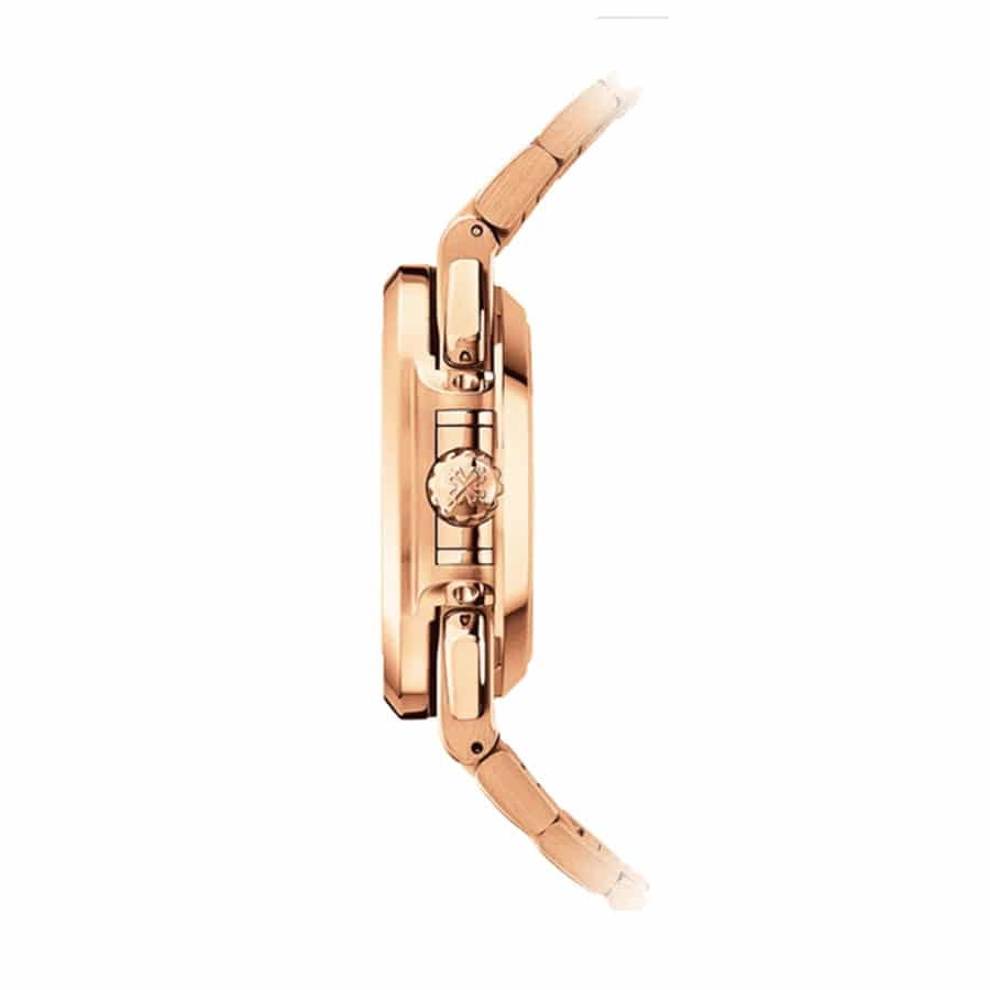 -3/+3 seconds per day, meeting COSC certification limits. The adjustable 904L stainless steel bracelet has a double-fold clasp in